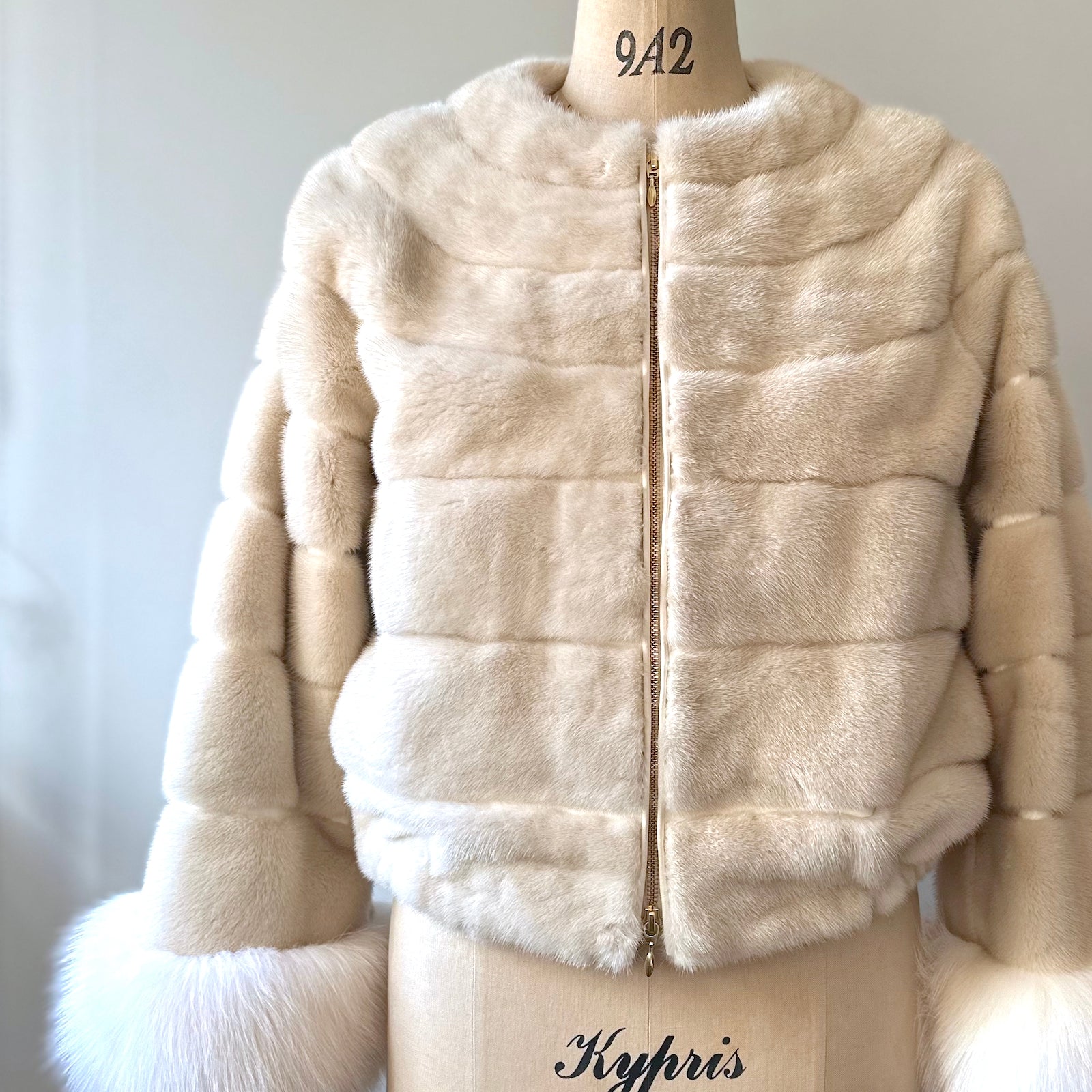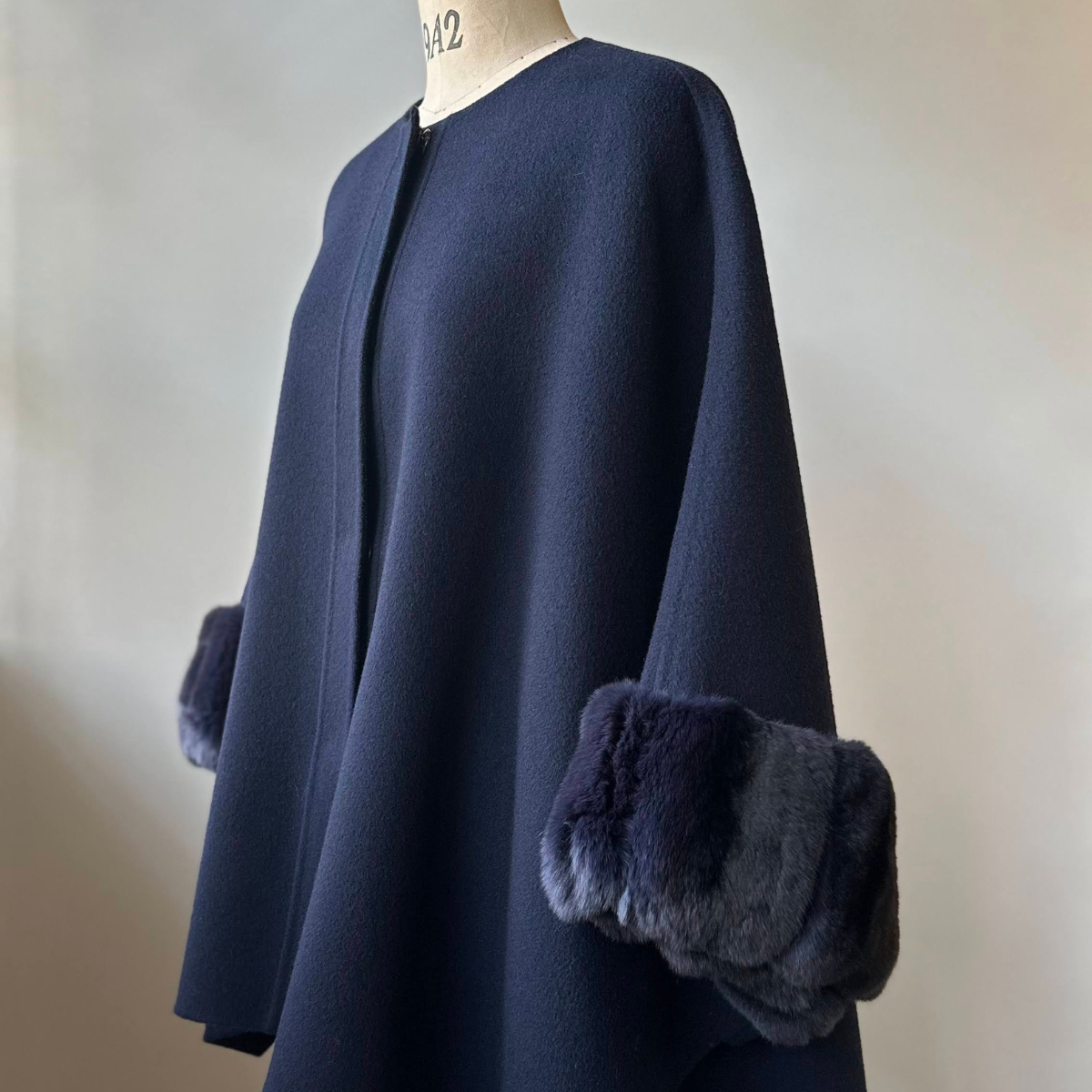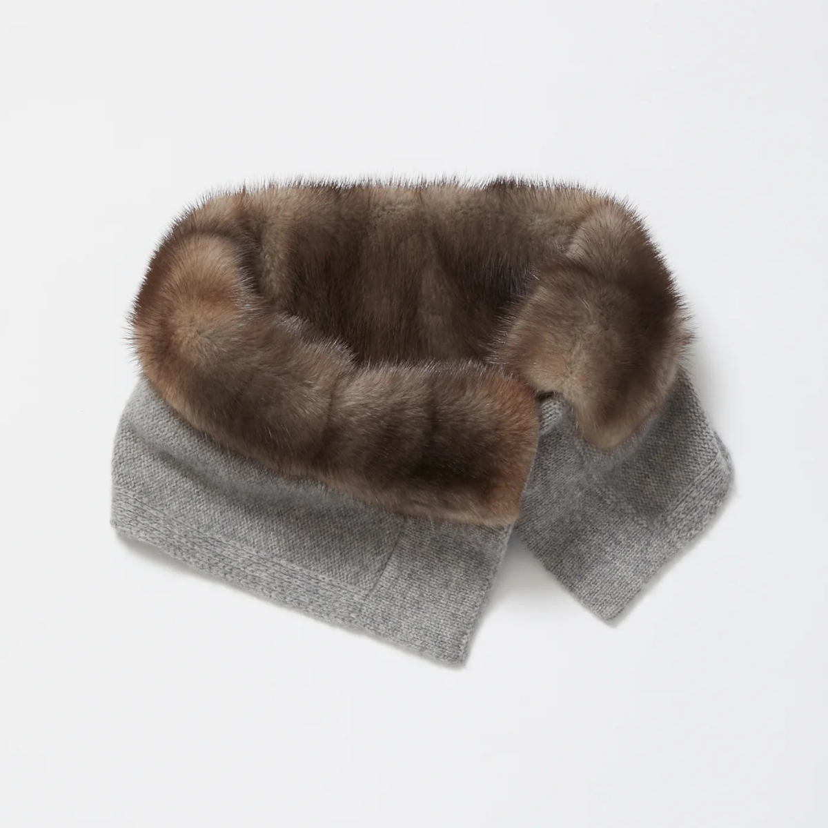 ウールやカシミヤを用いたアイテムの上に毛皮をドッキングして、普段のコーディネートに取り入れやすいデザインに仕立てます。