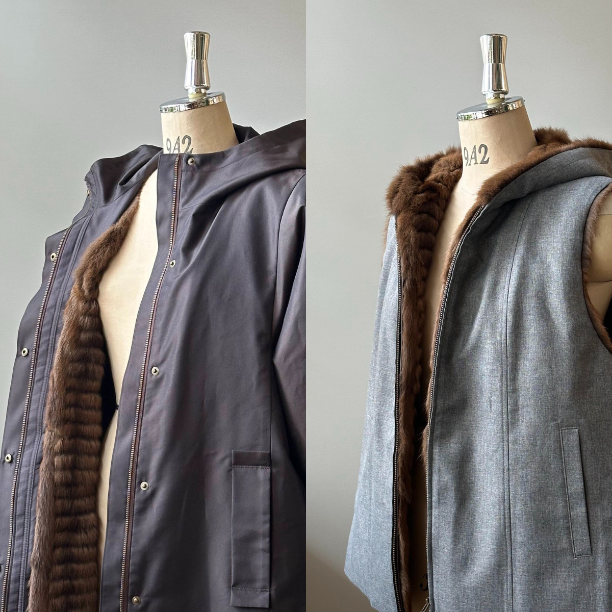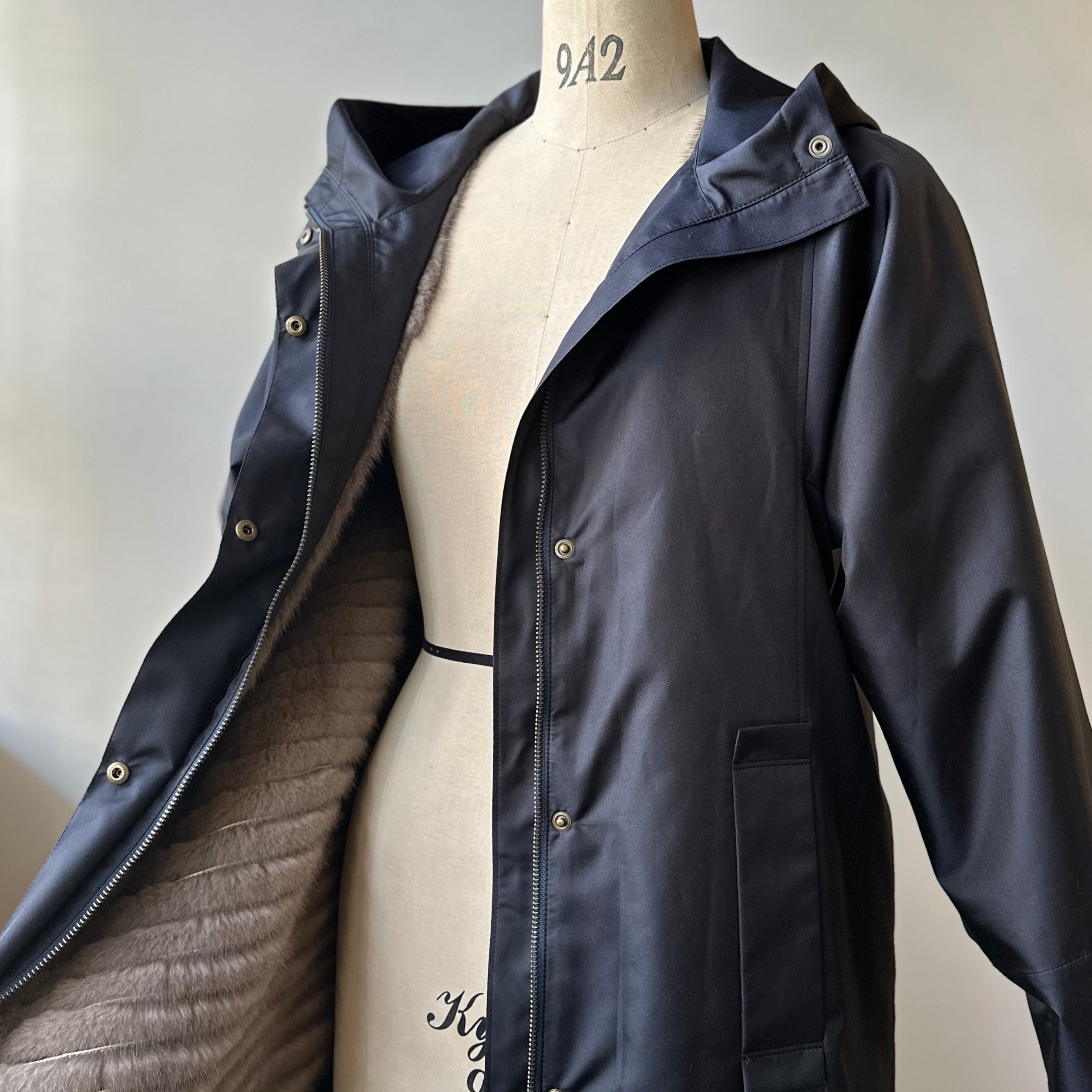 オリジナルで仕立てた軽量コートの内側に、お手持ちの毛皮を裏地(ライナー)のように加工して取り付けます。